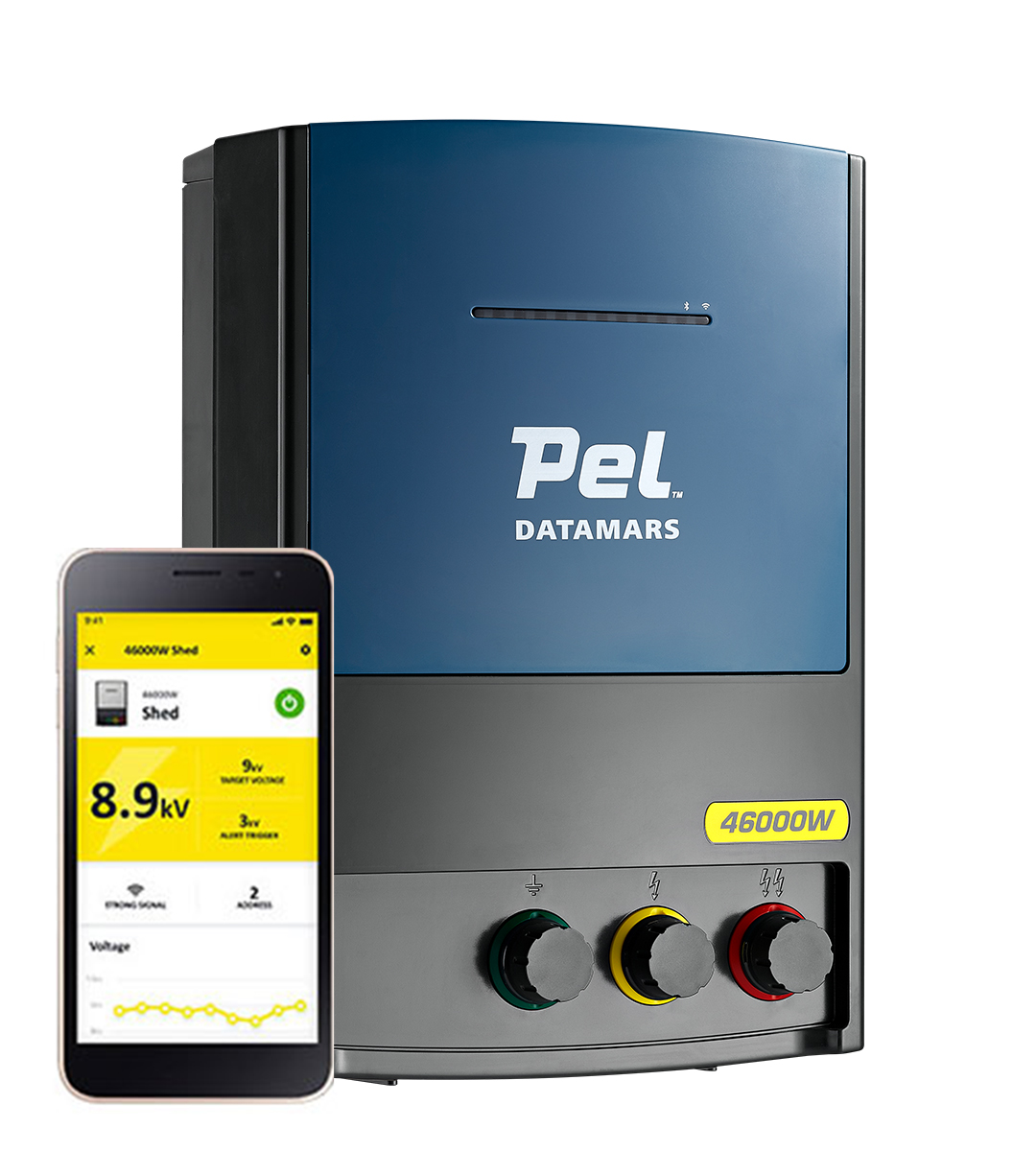 The Pel 46000W Mains Energizer offers a powerful alternative to the 36000R model, for farmers that want a great performing energizer with an intuitive interface. With Bluetooth and Wi-Fi compatibility, the Datamars Livestock Farm App provides the ability to monitor and control the energizer from a phone.
